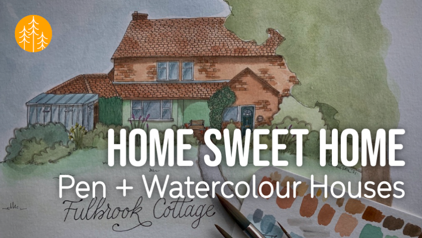 How to illustrate house portraits using pen + watercolour